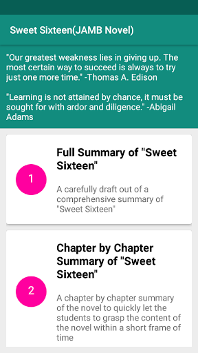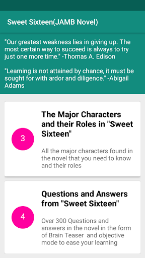 ** JAMB小説「Sweet Sixteen」の完全な概要 "Sweet Sixe Scileteen"