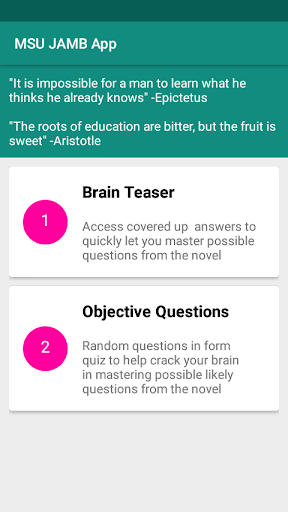 MSU JAMB CBTアプリは、すべての生徒にとってJAMBを簡単にするためのアプリであるアプリです。それ以降のクールな機能と結合されているのは、あなたがJAMB UTME試験で高く得点するのに役立つ正しいJAMBアプリを持っていることを確信しています。