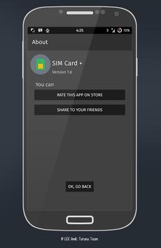 SIM Card is All in one tool to manage your SIM card easy. Displays information of your SIM Card, including IMEI code and other parameters. If you need it, choosing information and sharing it is able by multiple options like email, clipboard or social networks. Fully compatible with GSM, Nextel, R-UIM and 3G SIM cards.