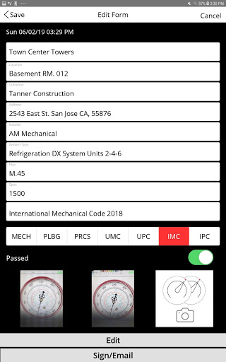Images of plumbing and mechanical, gauges and equipment can be captured and time-date stamped into the certification document.
