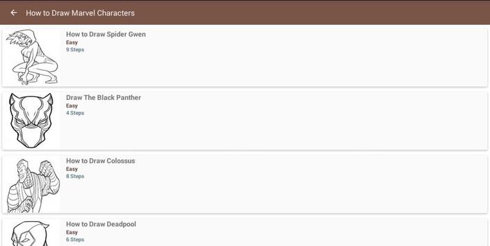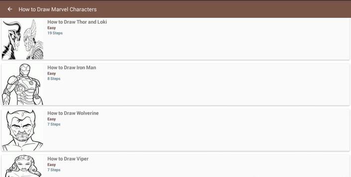 Are you a fan of Spider man, Captain America, Iron Man, The Avangers, Black Widow, X-Men or any other marvel comic hero or character, then this app is for you to help you draw your favorite character.