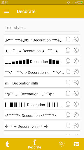* Custom text with many style and kaomoji, decoration and text template. * Copy and share custom text.