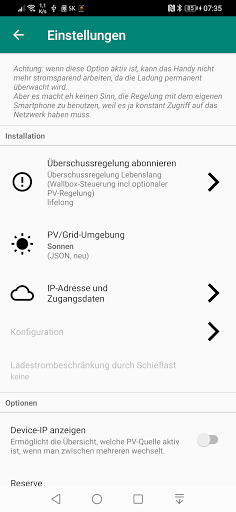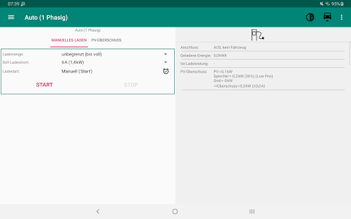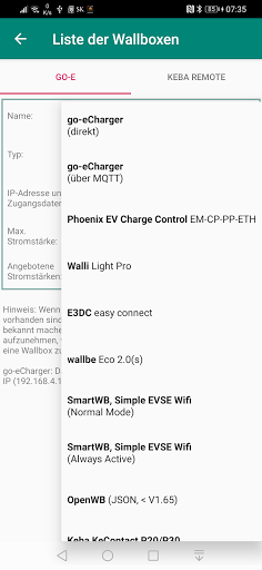 このアプリについてサポートされているウォールボックスを使用して充電プロセスを切り替えて充電電流を設定できます。そしてGo