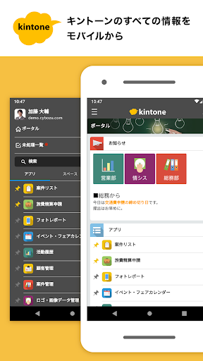 「kintone モバイル」は快適にkintoneを利用できるサイボウズ公式アプリです。