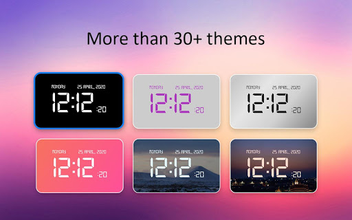 - 大きなデジタル時計に35個の異なるテーマがあります。
