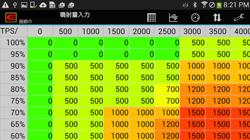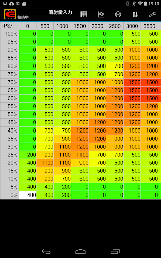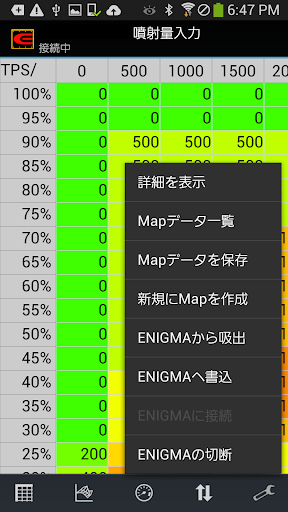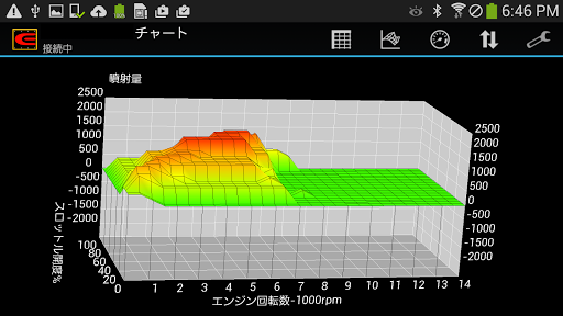 ・燃料マップに、現在のエンジン回転数、スロットル位置をリアルタイムで表示します。
