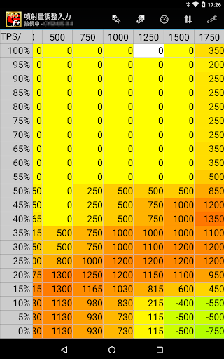 ・燃料マップに、現在のエンジン回転数、スロットル位置をリアルタイムで表示します。