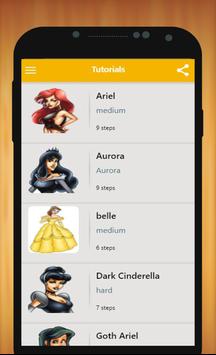 How to draw Disney application is step by step instruction which will teach you How to Drawing Disney Princess , Like a personal art teacher.