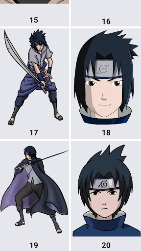 The “How to draw Sasuke Uchiha characters” app is an unique application that teaches you how to draw anime characters on a piece of paper. We have implemented lessons on a piece of squared paper, to make drawing Sasuke anime characters easier. After all, we have a lot of things to draw! More than 20 lessons how to draw characters from the anime. Hurry up, install the app, and you will no longer have a questions about how to draw Sasuke Uchiha. What are you waiting for?