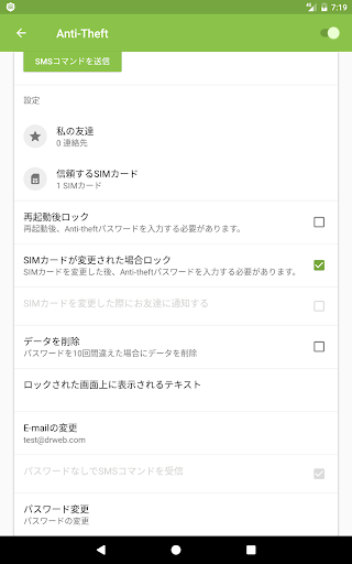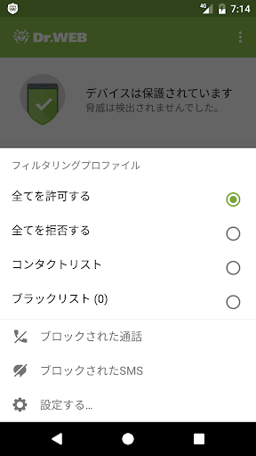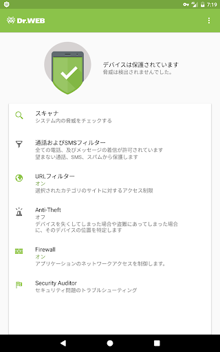 有効なGoogle社のポリシーを満たすDr.Webコンポーネントのみが、Dr.Web Security Spaceに含まれております。権利所有者が、Google社のポリシー変更に伴い、コンポーネントを変更できます。その際、権利所有者は、ユーザーに対し、何らかの義務を一切負いません。尚、通話およびSMSフィルター、やAnti-theftが含まれる全てのコンポーネントが含まれるDr.Web Security Space for Android を権利所有者のウェブサイトよりダウンロードできます。