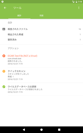•検出された脅威を隔離に移動し、必要な場合には復元することができます。