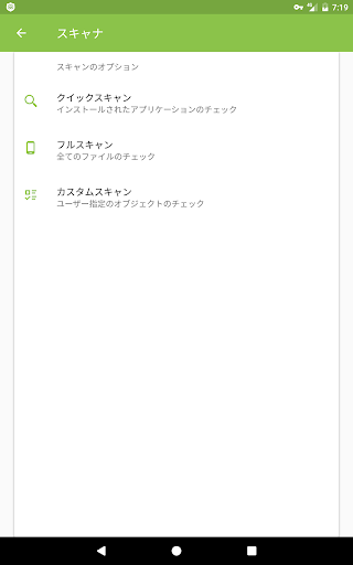 • ファイルシステムのクイックスキャン、フルスキャン、個別のファイルやフォルダに対するカスタムスキャンを実行します。