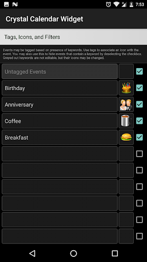 - Show visual cues for events. For example, show a ‘Party Hat’ icon for events with the text ‘Birthday’