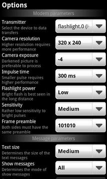 The modem supports point-to-multipoint message transfers at up to 8 bps on link and uses device's flashlight or display as a signal transmitter and its back camera as a receiver.