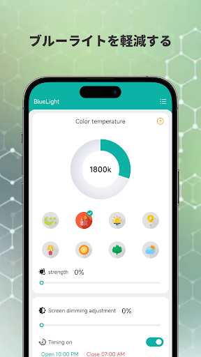 このアプリは、携帯電話の画面の光を調整することでブルーライトを軽減できます。携帯電話をナイトモードに切り替えると目の疲れが大幅に軽減され、夜に携帯電話を見るときに目が快適になります。