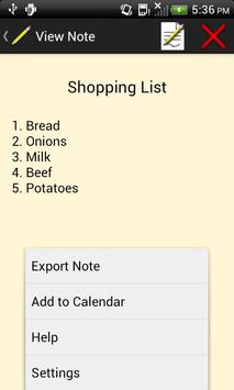 Export Menu replaced with "Share Note" (can export to SMS from there)