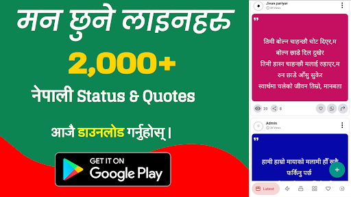 △△△:NEPALIステータスShayari、引用符、ビデオ、Ukhan Tukka Gajalなど。Nepali言語Nepali Man Chhune Lineアプリ。 機能: - ポスト - ポスト自動承認 -quotesとステータスビデオ -photo /ビデオアップロード