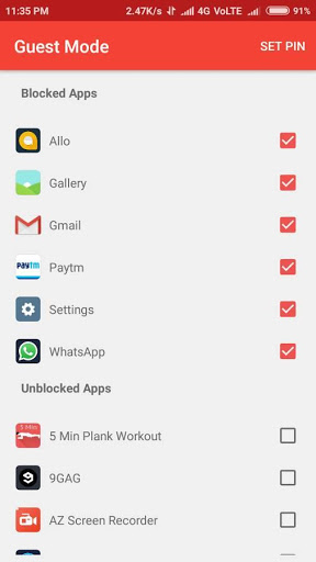 • A WAY TO GIVE ACCESS TO A PARTICULAR BLOCKED APP : Suppose you want to give access to a blocked app to someone, then click on the upper right corner of the lock screen and select the app and then the user can access that app only.