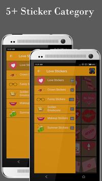 You can add Face stickers, Text stickers, Love stickers, emoticons, People stickers and Funny stickers.