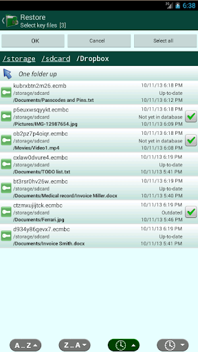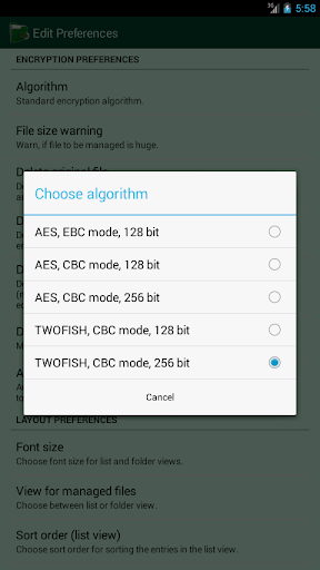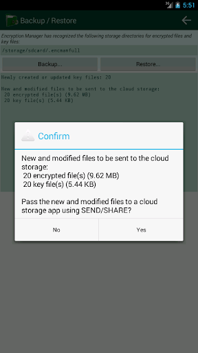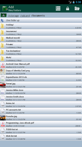 Encrypting new files is very simple: they can be chosen either with the built-in file manager or by simply using "send/share" from another app.