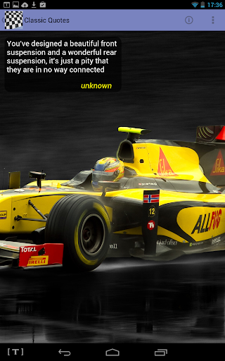 Please note F1, FORMULA ONE, FORMULA 1, FIA FORMULA ONE WORLD CHAMPIONSHIP, GRAND PRIX and related marks are trade marks of Formula One Licensing B.V. This application is not associated in any way with the Formula One group of companies, the prior rights of which are hereby acknowledged.
