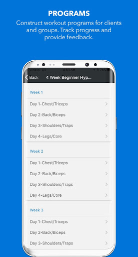 - トレーニングの割り当て、アプリ内メッセージング、写真/ビデオのアップロード、および進捗メトリクスを受信する(該当する場合)