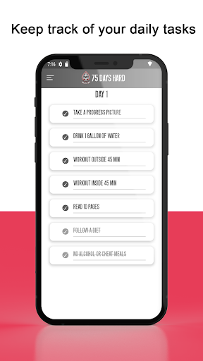 75日間のハードチャレンジはフィットネスや健康アプリです。課題は75日間妥協することなく正確に追跡されなければならない6つの規則を持っている75のハード・プログラムについてです。
