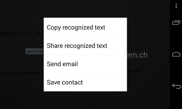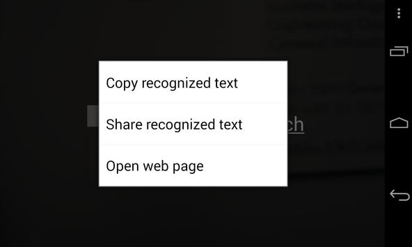 Once the text is recognized by the application, you will be able to perform some of these actions after doing a long click over the text:
