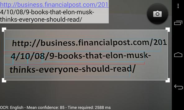 Text Reader is an OCR solution (Optical character recognition). It is important to have a good source of light and a flat background (black on white works pretty well), and also to keep the mobile phone stable over the text to read with the camera focused.