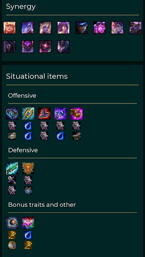 "TFT Adviser" can help you quickly get all necessary info about traits, items, champions and setups (builds). There is also a Builder feature that allow you to build best setup for your games.