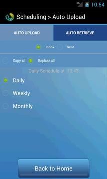 Auto scheduling is another added advantage which Smart Backup has provided. Customer can set the time for Auto scheduling and at that time applications will Auto Backup/Retrieve the SMS.