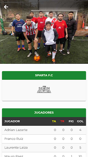 - Historial de partidos jugados por el equipo en el detalle del mismo