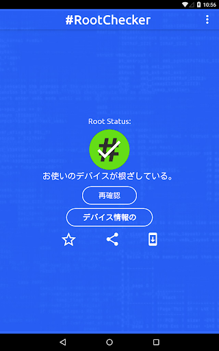 ルートチェッカーは、あなたのAndroidデバイスのルート(SuperSu)ステータスをチェックします。これは、rootまたはスーパーユーザ(SU)ライブラリをインストールしません。発根は、ユーザーが(「rootアクセス」として知られている)、特権制御を取得することができます。ルートステータスをチェックした後あなたは、Facebook、Twitterや他のアプリケーションを経由して、それを共有することができます。