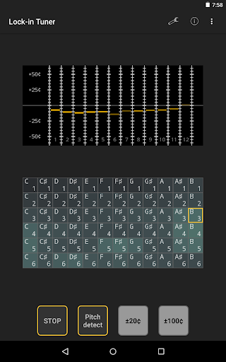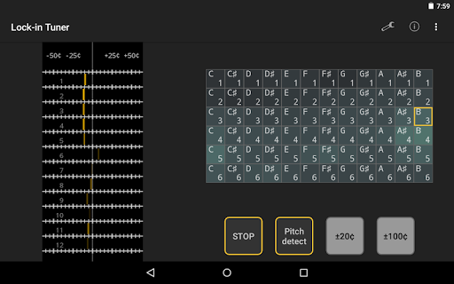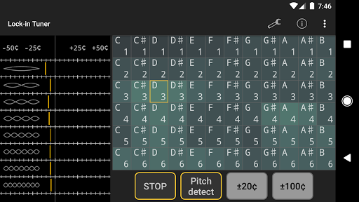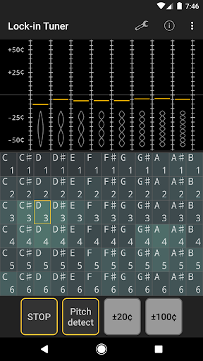 ソフトウェアフェーズロックループに基づく文字列振動の複数の高調波を追跡する文字列機器用のチューナー。 購入前にデモ版を試してください。