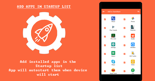 Select which applications you want to start after phone startup. Auto-start works on all phones/tablets and it doesn't require root permission or any extra permission.