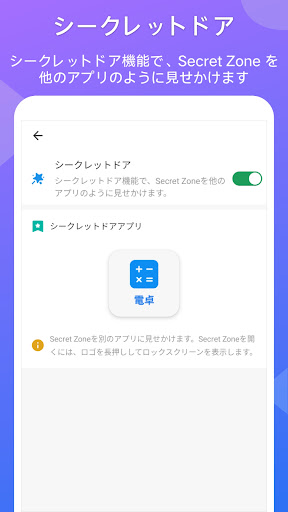 - シークレットドア機能で、Secret Zone を他のアプリのように見せかけます