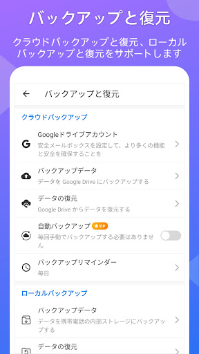 - クラウドバックアップと復元、ローカルバックアップと復元をサポートします。