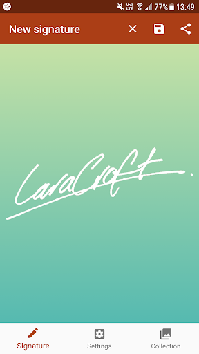 Signature Creator Lite (2.5 MB) represents an intuitive signature platform that allows you to create your own create signature on Android phone.
