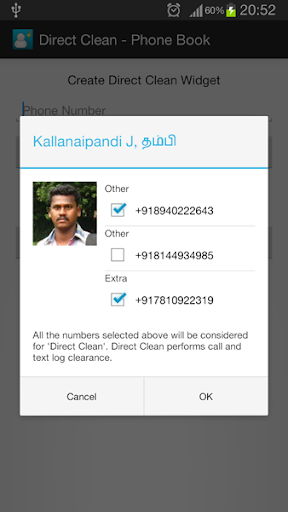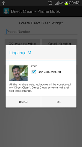 "Direct Clean" is a single click widget, useful to clear all the CALL logs of a Phone Number OR a Contact configured with it.