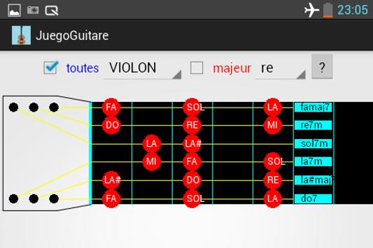 Cette application est une interface de guitare. Vous jouez les notes et les accords en fonction d'une tonalité (accords de tonalité). Vous avez des gammes/modes majeurs et mineurs. Les accords peuvent être joués au piano, violon, saxo, basse et guitare. L application inclut le air guitare!