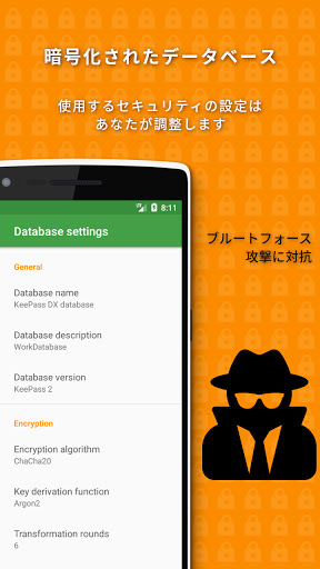 - .kdb、.kdbx ファイル(バージョン1から4)に対応。AES、Twofish、ChaCha20、Argon2 アルゴリズムが使用可能
