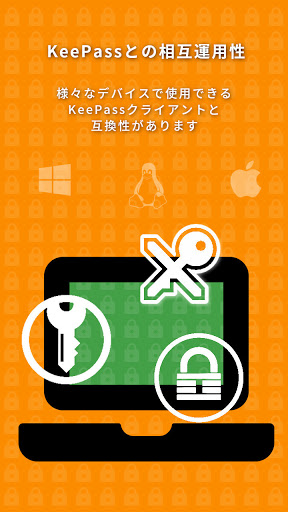 複数の形式に対応する KeePass パスワード マネージャー。Android の設計基準が組み込まれており、パスワード、鍵、デジタル ID を安全な方法で保存して使用できます。