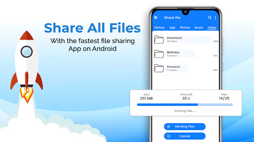 このファイル共有とメディア転送アプリは、音楽、ビデオ、写真などを転送するのに役立ちます。あなたがする必要があるのは、音楽、ビデオ、写真、映画、アプリなどのような共有する文書を選択することです。この転送アプリを使用することで、あなたの人生はあなたがどんなデータケーブルやラップトップにも必要ないほど簡単になります。誰にも何も共有するのが簡単です。このファイル転送とデータ共有アプリを即座に写真、ビデオ、ミュージックビデオやその他のファイルをすばやく共有します。あなたがあなたの友人や家族に共有したいファイルを共有して転送します。このファイル転送アプリ2021を介してファイルを送信したり、ファイルを受け取ることもできます。
