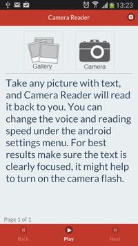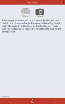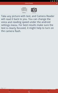 Camera Reader will automatically recognize (ocr) any text in the photo and will then read it back to you.