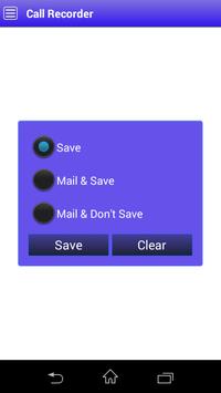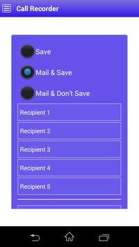 4.Open left menu and click Mail settings to set your mail to send the recorded files..In this page you will find options to save the recorded files in your phone or to an email...