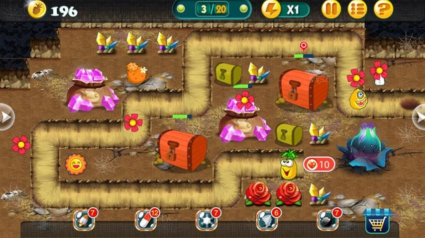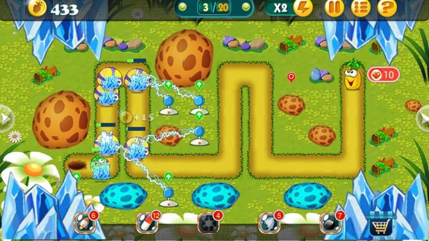 Rule is simply,use correct strategy to put towers on right places and then upgrade them to defend the farm fruits.
