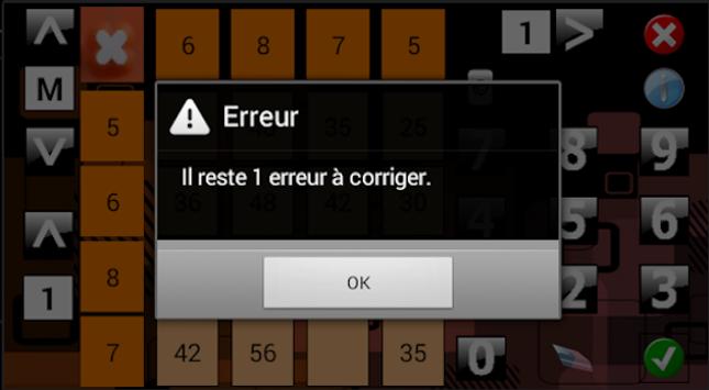 L'intérêt de la présentation de ces opérations dans un carré de calculs est qu'il n'est possible de terminer l'application que quand toutes les réponses sont exactes.