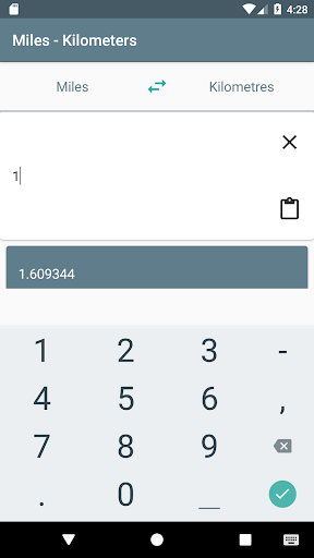 This application counts miles to kilometers and vice versa (mi to km or km to mi). The key point in this application is that it shows all the numbers after the comma, that is is shows exact number of the result.