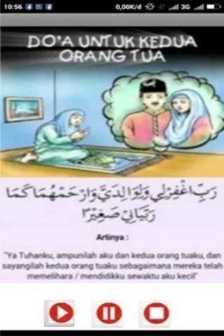 Belajar membaca dan menghafal doa harian anak, memahami artinya dan mengucapkan dalam aktifitas sehari-hari. Aplikasi ini sebagai media pembelajaran bagi anak-anak yang dapat digunakan setiap saat.
