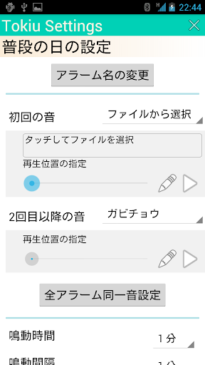 また、曲の好きな場所から再生することもできます。アラーム音は、1回目と2回目以降を別に設定できます。